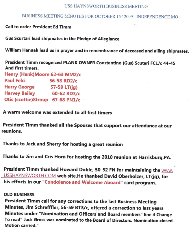 THE USS HAYNSWORTH REUNION COMMITTEE